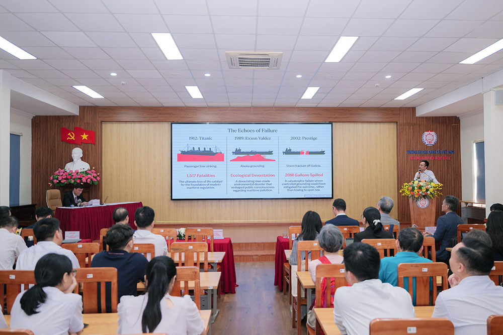 Trong khuôn khổ chương trình, nhiều tham luận đã được trình bày, tập trung vào các xu hướng mới trong khoa học hàng hải và phát triển kinh tế biển. Nội dung chủ yếu đề cập đến việc ứng dụng công nghệ hiện đại, đặc biệt là trí tuệ nhân tạo AI và hệ thống giám sát tự động trong quản lý tài nguyên, bảo vệ môi trường biển. Bên cạnh đó, các vấn đề về an toàn hàng hải, phát triển cảng biển và những thách thức pháp lý trong bối cảnh hội nhập cũng được thảo luận, góp phần cung cấp cơ sở thực tiễn cho định hướng phát triển ngành.